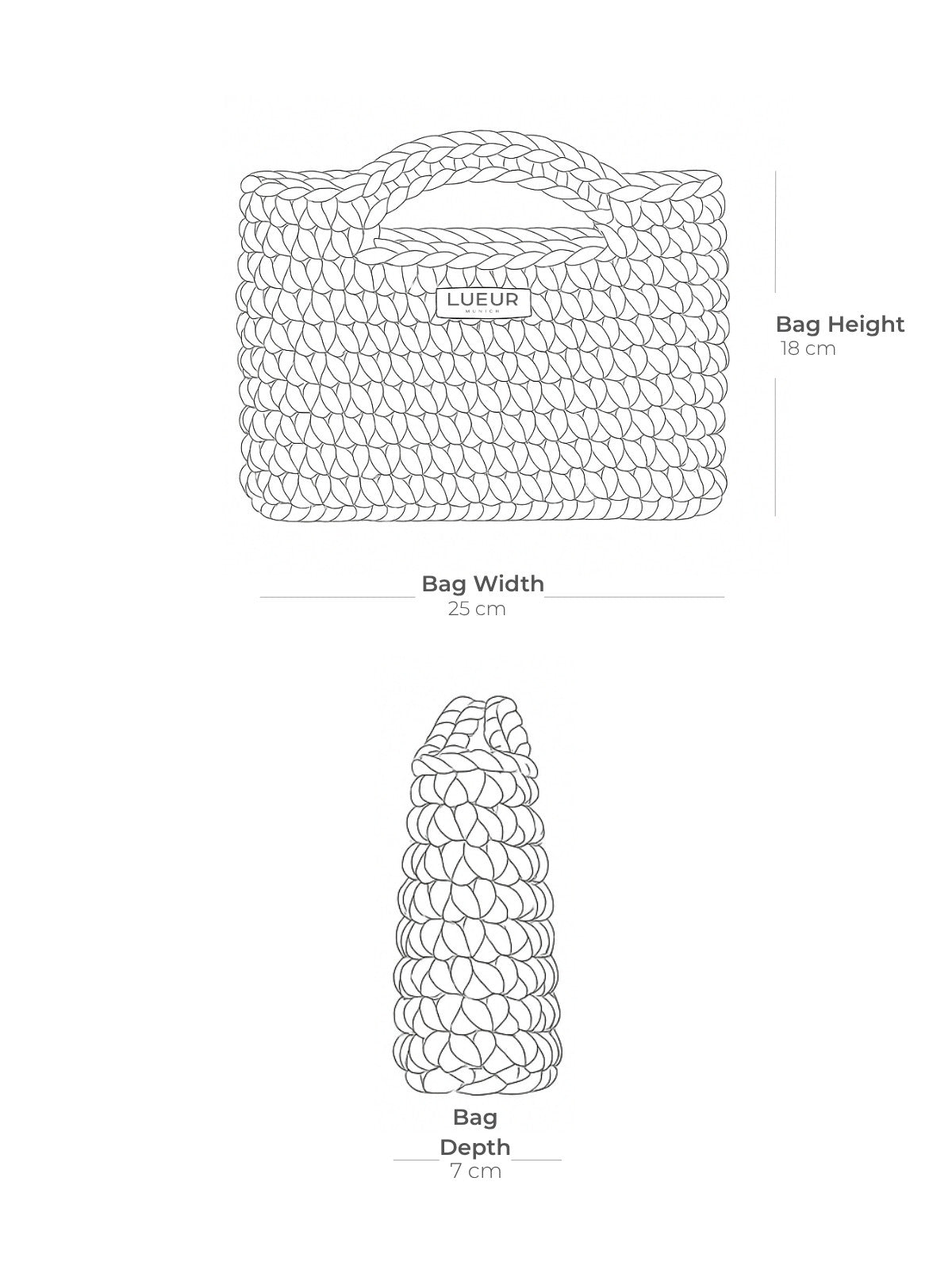 Slight variations of 1–2 cm are a natural result of the handcrafted process, making each bag truly one of a kind. These measurements serve as an elegant guideline — unique in texture, distinctive in character.